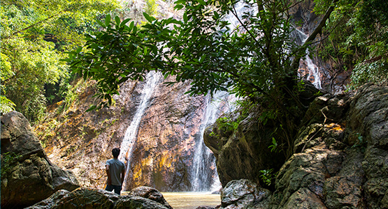 Tour the Island’s Temples and Waterfalls | Take a tour of this beautiful island to see the waterfalls and temples. Nearby is Samui’s most iconic landmark, the golden Big Buddha and its impressive neighbour, Plai Laem Wat. Further south in Lamai, visit the enigmatic ‘Mummy Monk’ at Wat Khunaram the island’s most famous mummified monk, and nearby Wat Sila Ngu or Red temple. Then head home through the mountains via stunning waterfalls, magnificent scenery and aerial views of the island.